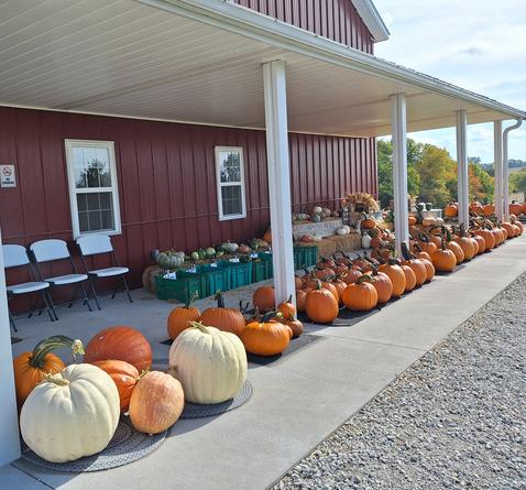 If one of the pumpkins you purchase from us fails to last until Halloween, please come back when we are open, and we will replace it for you free of charge. Pumpkins will be available from late September through October.